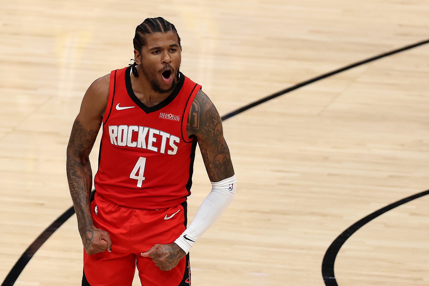 在杜兰特的交易之后,这位前榜眼秀在太阳得到了一个新的开始——以及一个新的位置。据《亚利桑那体育》记者John Gambadoro报道,太阳期望格林出任首发控球后卫搭档德文-布克。格林在效力于火箭的四个赛季里只展现了很一般的组织能力,场均助攻最高为3.7次。而且格林还不是一个高效的挡拆持球手。根据GeniusIQ的数据,在过去两个赛季中,在为他设置掩护的挡拆进攻中,他每回合只能得到0.95分,在至少执行了2500次挡拆的40名球员中排名第33位。